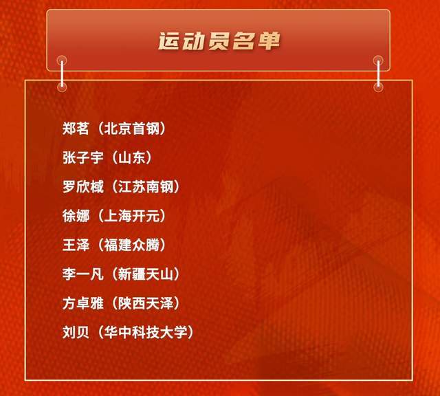 第一期短訓(xùn)營,身高2米26的大中鋒張子宇就入選其中。宮魯鳴指導(dǎo)曾經(jīng)感慨:我們擁有三大世界級中鋒。——這一年下來,張子宇一直得到宮魯鳴的點(diǎn)撥和培養(yǎng),韓旭兢兢業(yè)業(yè),李月汝則在海外提高自己。第一期短訓(xùn)營8人,具體名單如下: