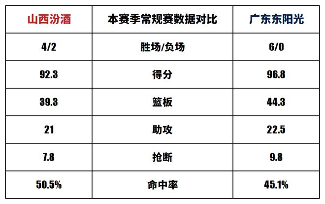 山西汾酒與廣東東陽(yáng)光歷史上一共交手48次,山西汾酒10勝38負(fù)。上賽季兩隊(duì)交手7次,山西汾酒6勝1負(fù)。