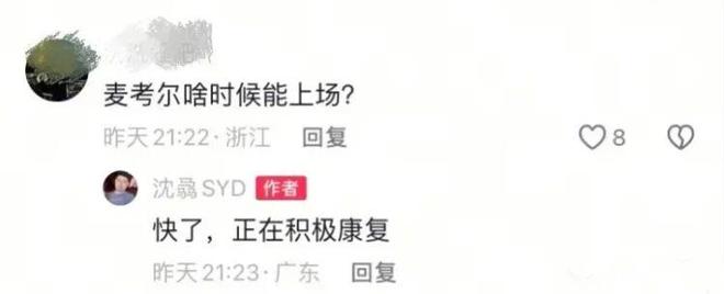 其實很多廣東球迷對徐杰的情況一直非常關心,徐杰連續多場比賽長時間出戰的情況也受到了球迷關注,不少球迷都希望能夠有球員為徐杰分擔一下壓力。在媒體曝出徐杰的膝蓋出現了些許不適后,有球迷詢問了外援麥考爾的傷病恢復情況,希望他能夠早點復出幫到徐杰。據麥考爾的經紀人透露,麥考爾恢復得非常不錯,不久后就能復出了,這對廣東男籃來說是個非常好的消息。