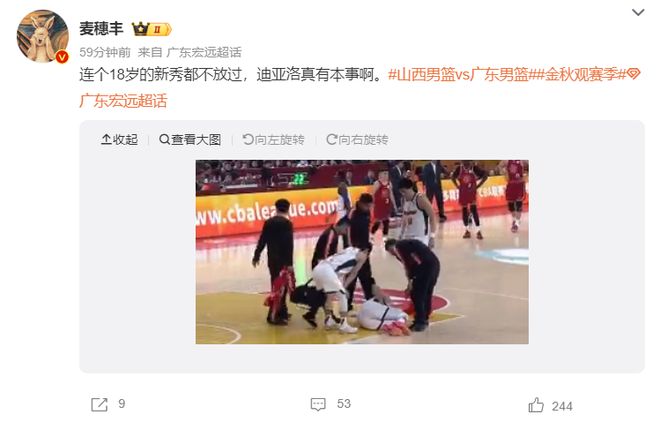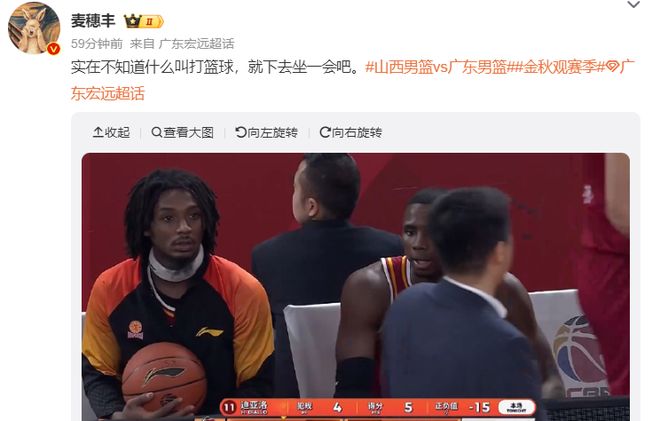 麥穗豐:不懂打籃球你就下去坐著吧。(此役全場(chǎng)比賽迪亞洛16分鐘,10中3+三分1中1拿到9分7籃板4助攻2搶斷蓋帽,正負(fù)值-13)