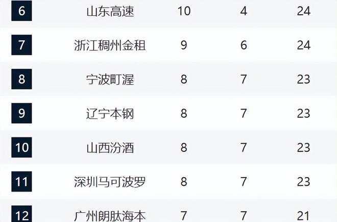 4-6分別是青島、北京和山東。本賽季青島一直都可以名列第一梯隊,至于北京最近的情況越來越糟糕,這輪再度輸在了關鍵球。山東目前已經八連勝,他們和上海一樣,都是開局低迷,但全部都通過調整完成崛起。
