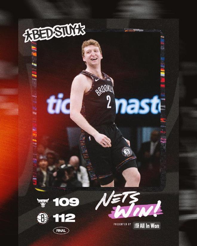 進入第四節比賽,籃網率先擴大92-72領先20分優勢,公牛在前6分鐘打出20-6攻勢追到僅差6分。波特兩罰全中,公牛強勢打出一波15-8攻勢,籃網已經108-109被反超1分,波特高難度中投準絕殺,鮑威爾完成搶斷,克洛尼兩罰全中,武切維奇錯失絕平三分,最終籃網112-109險勝公牛。