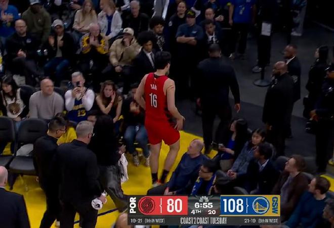 在比賽進行到第四節時,讓中國球迷揪心的一幕出現了:楊瀚森在一次進攻中積極拼搶,但后腦勺不慎撞到了勇士后衛威爾-理查德膝蓋,痛苦倒地。隨后開拓者的隊醫進行檢查后讓其返回更衣室進行檢查。
