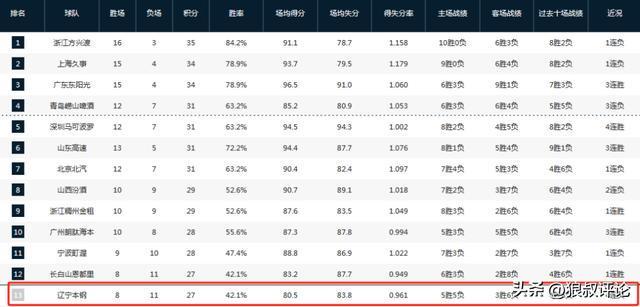 此役過后,遼寧男籃的戰績為8勝11負,跌出了積分榜前12區域,排在第13。