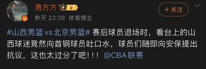 山西男籃主場和北京男籃的比賽打得非常激烈,結果是以1分之差不敵對手,遭遇了一波三連敗。據北京體育記者勇方方透露,在比賽結束后北京男籃球員退場時,不僅遭到了現場球迷辱罵,更有球迷從看臺上向雷蒙等球員吐口水,引發了媒體和球迷的關注。在賽后的新聞發布會上,雷蒙也提到了此事,他表示球隊輸掉了比賽,球迷罵幾句發泄一下也就算了,向球員吐口水的行為就跌分兒了。