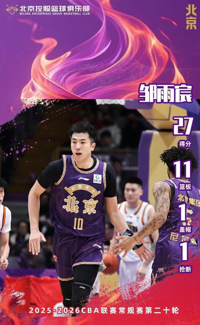 數(shù)據(jù)方面,鄒雨宸拿下27分11籃板,里勒得到20分3籃板3助攻,基茲林克4投4中得到12分2籃板5助攻。