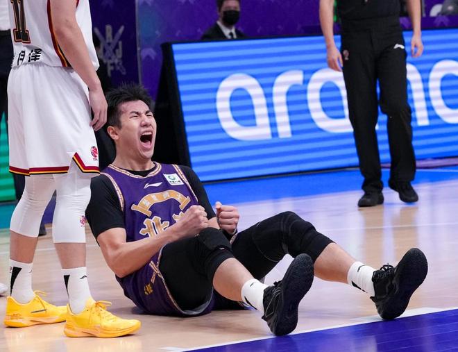 1月26日,北京控股隊球員鄒雨宸在比賽中慶祝得分。新華社記者 雒圓 攝