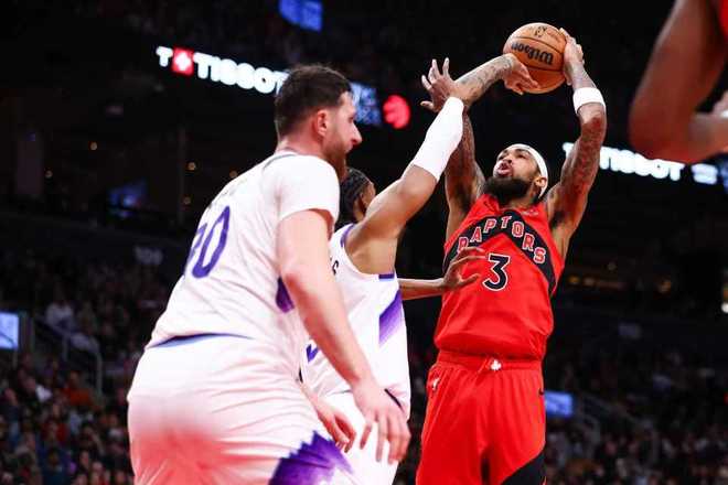 中場休息回來,猛龍進攻火力大幅提升首次單節得分35+,爵士無緣連續兩節得分30+。猛龍進攻端回暖開啟反撲追分模式,巴雷特與巴恩斯持續攻傳結合,引領猛龍用團隊攻勢逐步反超比分。猛龍單節35-28凈勝7分,三節結束猛龍86-84反超爵士。前三節比賽,爵士三分26中8,馬爾卡寧17中8得到23+8與科利爾18分6助攻,引領4人得分上雙;猛龍三分28中11,巴雷特17+3+3與巴恩斯11+9+4,引領5人得分上雙。
