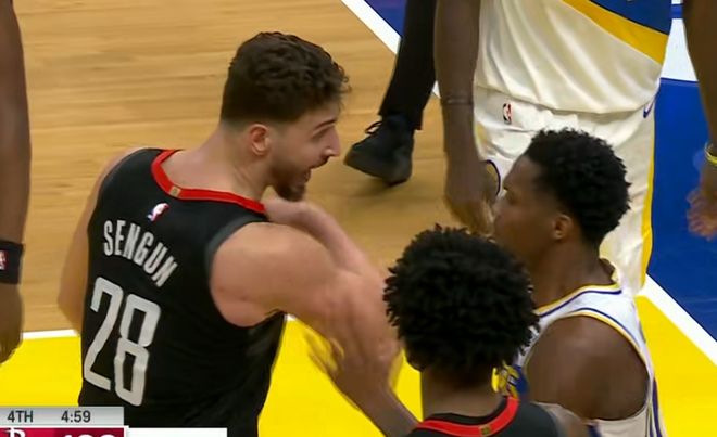 于是在比賽當中,申經多次和對手發生過沖突,打得好得同時也是火力全開,甚至還和對方球員發生過不止一次的沖突。申京和對手發生過兩次沖突,倒地搶球的時候有過一次,更主要的是單挑馬瑟林的時候,轉身上籃被對面推了一下腰。他當場就急眼了,返身就要揍馬瑟林,兩邊互相推搡,申京甚至非常罕見的伸出右手一肘子錘在了對面的胸口。
