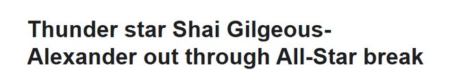 北京時間2月5日,據雷霆官方消息,俄克拉荷馬城雷霆隊后衛亞歷山大,因在周二晚間球隊大勝魔術隊的比賽中腹部肌肉拉傷,將至少缺陣球隊接下來的五場比賽,他將在全明星周末后接受復查。