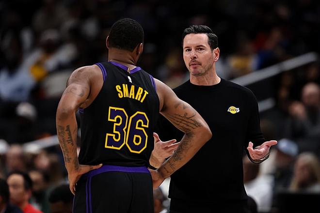 本場比賽中,湖人的先發后場大閘馬庫斯-斯馬特(Marcus Smart)的表現也算是中規中矩。斯馬特全場出場17分55秒,投籃5中3,三分線外2中0,得到了6分3籃板1助攻1搶斷的數據,還有1次失誤和2次犯規,正負值則是達到了全場最高的+30。斯馬特在進攻端雖然沒有找到自己的外線投籃手感,但是好歹也沒有浪費什么機會,也算是得到了一些分數。斯馬特在防守端的表現也是相當不錯的,他也是依然保持了很高的防守強度并且給對手制造了不小的麻煩。斯馬特在本場比賽中的數據比較一般,但是他確實是很好地扮演了自己應該扮演的角色,起到了輔助的作用,這也是為球隊的這場大勝做出了不小的貢獻,而且他超高的正負值也能夠證明這一點。