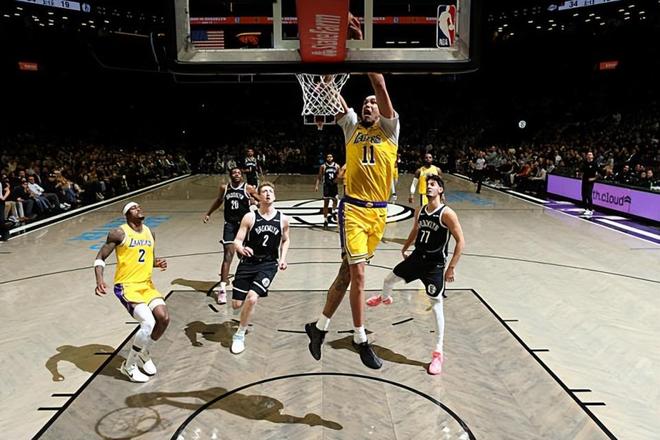 在此前的一場NBA常規(guī)賽中,洛杉磯湖人以125比109輕取了主場作戰(zhàn)的布魯克林籃網(wǎng)。本場比賽后,在最近3場比賽中拿下了兩場勝利的湖人的戰(zhàn)績提升到了30勝19負(fù),排名也是超過了明尼蘇達(dá)森林狼和菲尼克斯太陽并且攀升到了西部第5位,與身后的森林狼的勝場差為0場,與太陽的勝場差為0.5場;而遭遇了兩連敗的籃網(wǎng)的戰(zhàn)績則是下滑到了13勝36負(fù),繼續(xù)排名東部第13位,與身后的華盛頓奇才的勝場差為0場。