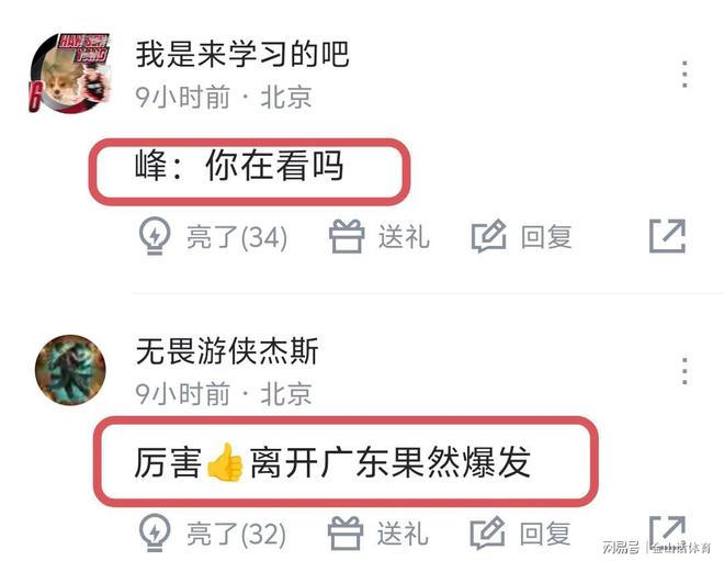 “峰:你在看嗎?”;“厲害離開廣東果然爆發”;“尷尬的誰?我不說了,廣州隊主教練當成寶培養是對的。”;“文班亞昕”;“徐昕又大號兩雙,還贏球。這就是教練的差距,就這能力還給池子,少杰打第3替補 ,真 無語”;“這就是我廣東的替補的替補,太強了”;“越來越適應了,這才三場比賽,一兩年以后徐昕不得打成姚明啊,徐昕真的被杜鋒廢了幾年”……