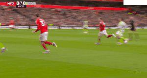 54' 吉布斯·懷特送出直塞,伊戈?duì)枴崽K斯前插橫傳,哈欽森包抄破門,諾丁漢森林扳平比分。