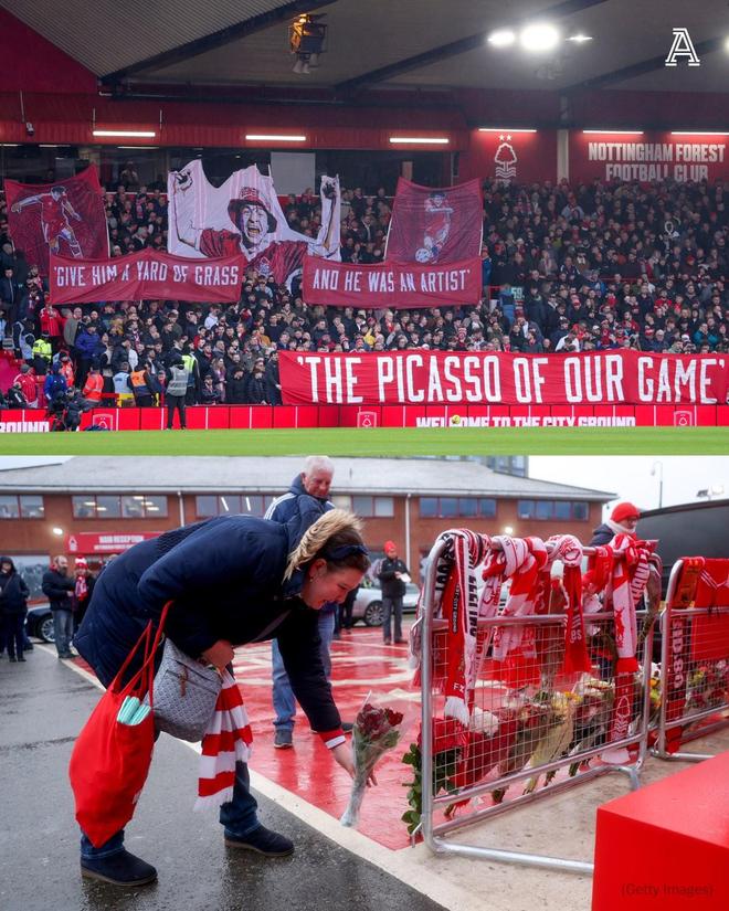 本輪賽前,諾丁漢森林隊(duì)主場周邊已為紀(jì)念羅伯遜設(shè)立了獻(xiàn)花區(qū)與緬懷角,不少球迷獻(xiàn)上鮮花悼念。比賽開始前,球迷也打出Tifo致敬這位隨森林隊(duì)兩奪歐冠的球隊(duì)傳奇。