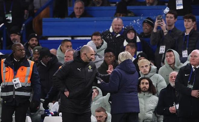 據報道,在切爾西主場不敵維拉比賽結束哨聲響起后不久,有球迷向維拉的替補席區域投擲了一個瓶子,濺濕了球員和工作人員。