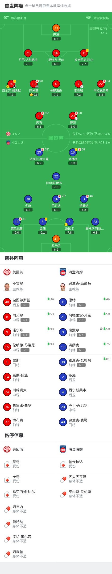 第48分鐘,美因茨球員蒂茨助攻阿米里打入一球。
