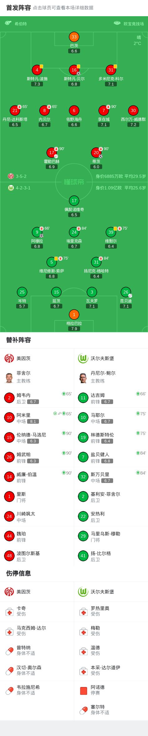 第3分鐘,沃爾夫斯堡球員昆貝迪助攻阿穆拉打入一球。