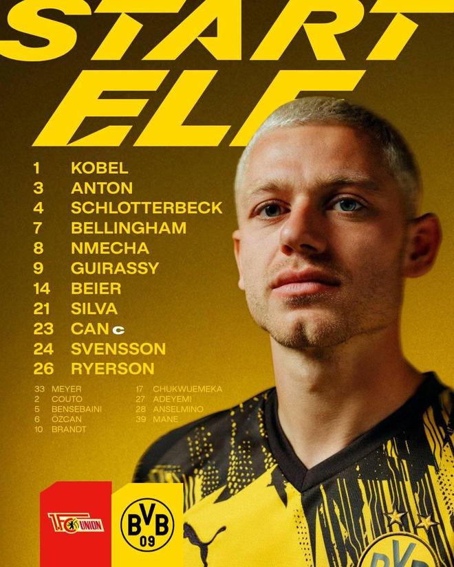 多特蒙德首發(fā):1-科貝爾、4-施洛特貝克、3-安東、24-丹尼爾-斯文松、23-埃姆雷-詹、14-拜爾、8-費利克斯-恩梅加、7-喬布-貝林厄姆、26-瑞爾森、21-法比奧-席爾瓦、9-吉拉西