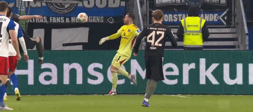 第45+5分鐘,小紅書丨神勇,諾伊爾連續兩次撲救,隨后裁判示意漢堡越位