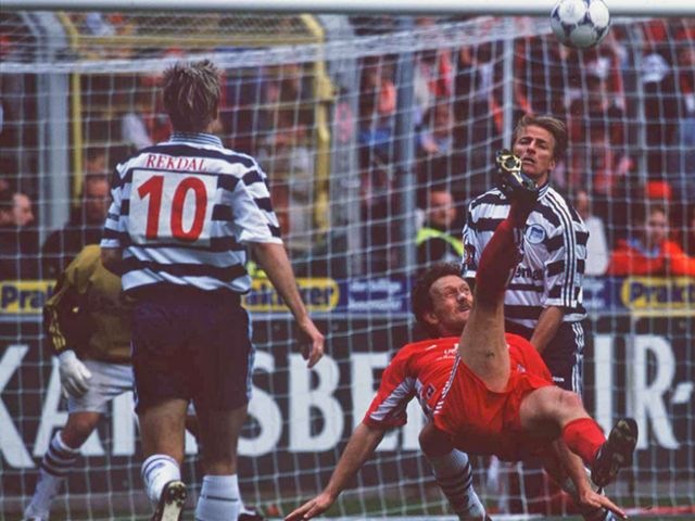 不過,馬紹爾的個人火力雖強,卻架不住球隊的戰(zhàn)術(shù)體系太過保守。整個1993—94賽季下來,他所在的德累斯頓迪那摩,一共只取得了33粒聯(lián)賽進球。馬紹爾為這樣一個東家效力,能夠取得兩位數(shù)的進球,已經(jīng)很不錯了。值得一提的是,馬紹爾的進球,并不是在對陣弱隊時刷出來的。包括拜仁慕尼黑、多特蒙德、勒沃庫森在內(nèi)的德甲勁旅,都被他攻破過大門。