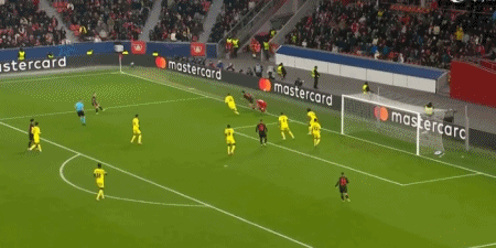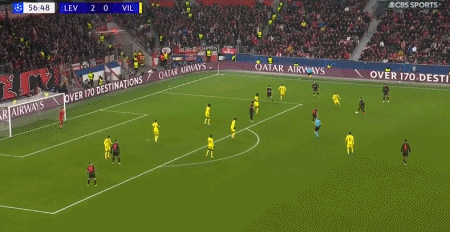 第57分鐘,巴斯克斯傳中,格里馬爾多凌空抽射破門,勒沃庫森3-0