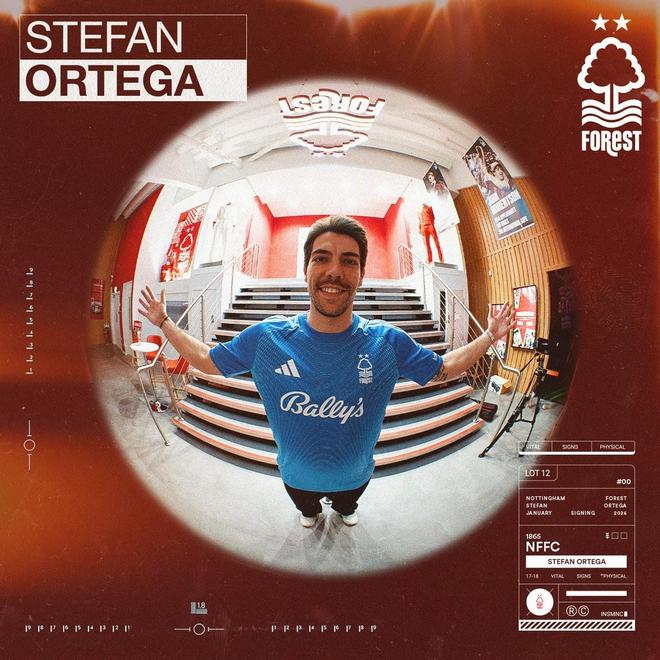 官方消息,曼城門將奧爾特加-莫雷諾加盟諾丁漢森林,雙方簽約至賽季結束。