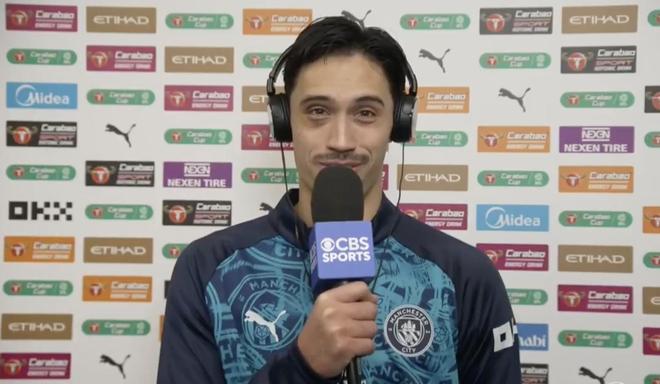 在英聯杯半決賽兩回合雙殺紐卡闖進決賽后,曼城中場賴因德斯接受了CBS體育的連線采訪,這位荷蘭中場談到了曼城的奪冠目標、英格蘭足球和意大利足球的區別、與阿森納的競爭關系以及眼部淤青是怎么來的等話題。