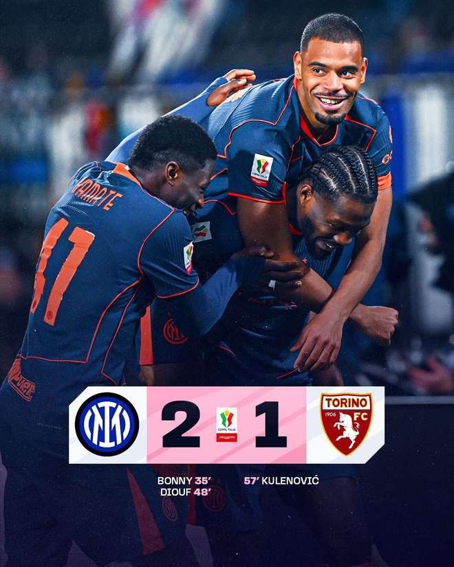 今天凌晨,國米在意大利杯1/4決賽中主場對陣都靈,上半場博尼頭球首開紀錄,下半場迪烏夫擴大比分,隨后都靈隊扳回一球,直到比賽結束沒有改變比分,國米主場2:1擊敗對手闖入意杯四強,半決賽對手將是那不勒斯與科莫之間的勝者。