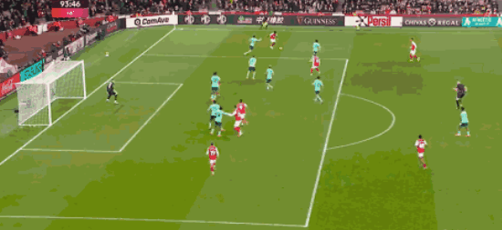 易邊再戰,阿森納繼續在場上圍攻狼隊,第68分鐘特羅薩德左路橫敲,賴斯調整后突然起腳遠射,但狼隊門將約翰斯通反應極快,飛身側撲化解了險情,不過2分鐘之后,薩卡制造了一粒神仙球,攻破了狼隊的大門,右側角球開出后,打在遠側球門立柱,皮球反彈到約翰斯通后背入網,幫助阿森納取得1-0的領先。