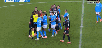 第83分鐘,火藥味十足,雙方爆發沖突,麥克托米奈、托莫里被出示黃牌