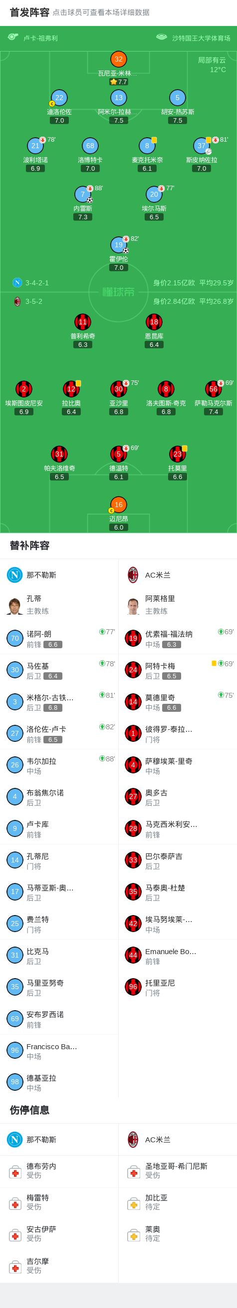 第39分鐘,霍伊倫橫傳,邁尼昂脫手,內雷斯補射破門,那不勒斯1-0領先