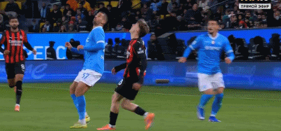 第14分鐘,薩勒馬克爾斯與斯皮納佐拉爭頂,前者痛苦倒地