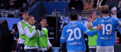 打進(jìn)精彩、關(guān)鍵的進(jìn)球之后,霍伊倫一路小跑,與那不勒斯替補(bǔ)球員慶祝。隊友們紛紛涌上,慶祝霍伊倫的完美表演。10天之前,霍伊倫用梅開二度幫助那不勒斯擊敗尤文,這場意超杯半決賽,霍伊倫再次成為英雄。