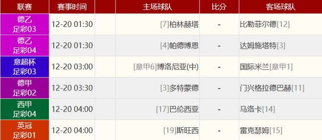 其他賽事比分: