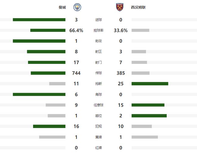 場面非常被動的西漢姆聯隊,在第32分鐘終于形成了一次進攻,但鮑勃在大禁區右側的掃射偏出了遠立柱,沒有給多納魯馬形成實質性的威脅,半場比賽結束之前,曼城擴大領先優勢,哈蘭德禁區內得球后,順勢做給了中路跟進的賴因德斯,后者小角度勁射,幫助曼城帶著2球領先,回到了更衣室。