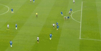 比賽的第54分鐘,戈登禁區內試圖突破,被斜向插過來的查洛巴撞倒。然而,主裁判并未第一時間判罰點球。