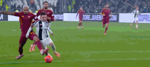 第12分鐘,迪巴拉射門,皮球擊中尤文球員折射后被門將沒收