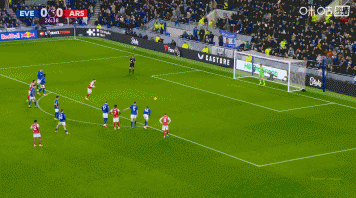 好在,20分鐘的蘇醒還是給他們帶來了進球機會。第24分鐘,禁區犯規,埃弗頓給阿森納遞上了大禮包。觀看慢放這的確是個毫無必要的手球犯規,點球沒問題。約克雷斯射門暴力又快速,1-0!