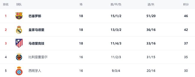 贏下這場比賽,意味著巴薩在聯賽取得8連勝。巴薩上一次在聯賽丟分還要追溯到與皇馬的比賽,當時巴薩1-2輸給了皇馬,在積分榜落后了。沒想到此后巴薩進入連勝模式,并且在積分榜超越了皇馬?,F在巴薩總積分是46分,領先皇馬4分,排名榜首。毫無疑問,巴薩就是奪冠最大熱門,擁有主動權。