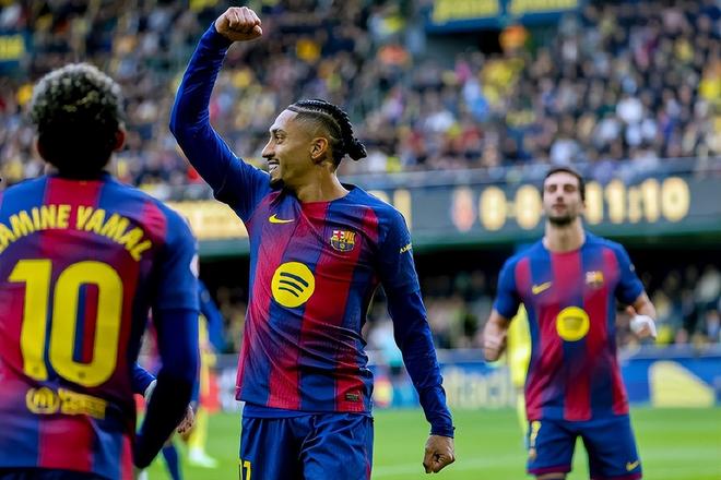 雖然歐冠聯賽戰罷6輪過后巴薩只排在積分榜第15,不過國內賽場上,巴薩不僅通過輪換晉級國王杯16強,聯賽也趁皇馬低迷時候穩穩領跑積分榜。本周末西甲展開冬歇期前的最后一輪比賽,巴薩來到陶瓷球場對陣比利亞雷亞爾,拉菲尼亞連續3輪破門,亞馬爾制造紅牌并取得進球,巴薩2:0客場帶走3分;各項賽事斬獲7連勝。